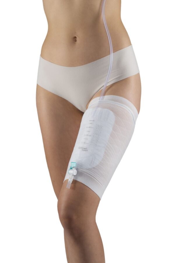W odróżnieniu od standardowych pasków mocujących zapewnia on bezpieczniejsze i wygodniejsze mocowanie worka do zbiórki moczu do ciała poprzez równomierne rozłożenie ciężaru wokół nogi i ograniczenie szeleszczenia worka podczas codziennego użytkowania.